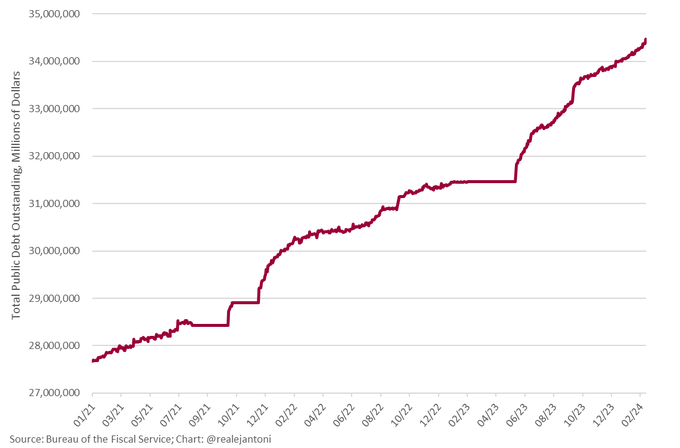 We’re on pace to hitting $35 trillion of total public debt within the next 7-8 weeks. That’s $106’000 of debt for every man, woman, and child.